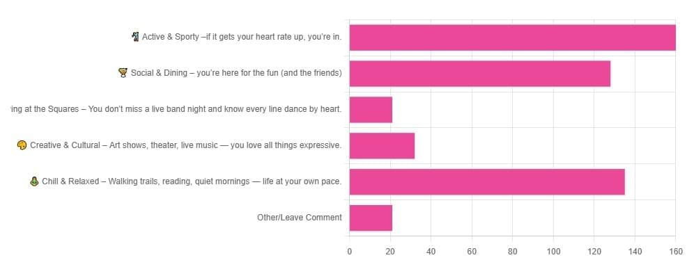 The best part? Over 20 readers said they’re “all of the above!” or proudly “whatever feels right that day.” Seems the true Villages lifestyle isn’t one-size-fits-all — it’s a blend of motion, relaxation, and a whole lot of fun.